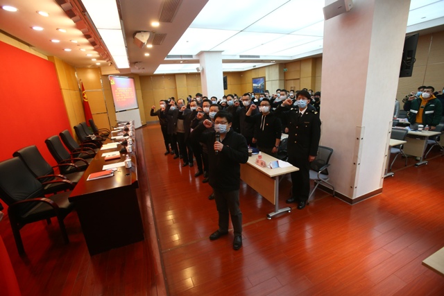 会上,全体突击队员和与会党员在王宇同志的领誓下重温入党誓词。之后,临时党支部书记、党员突击队队长,团市委党组成员、市青少年服务和权益保护办公室主任周建军同志从王宇同志手中接过党员突击队旗帜。