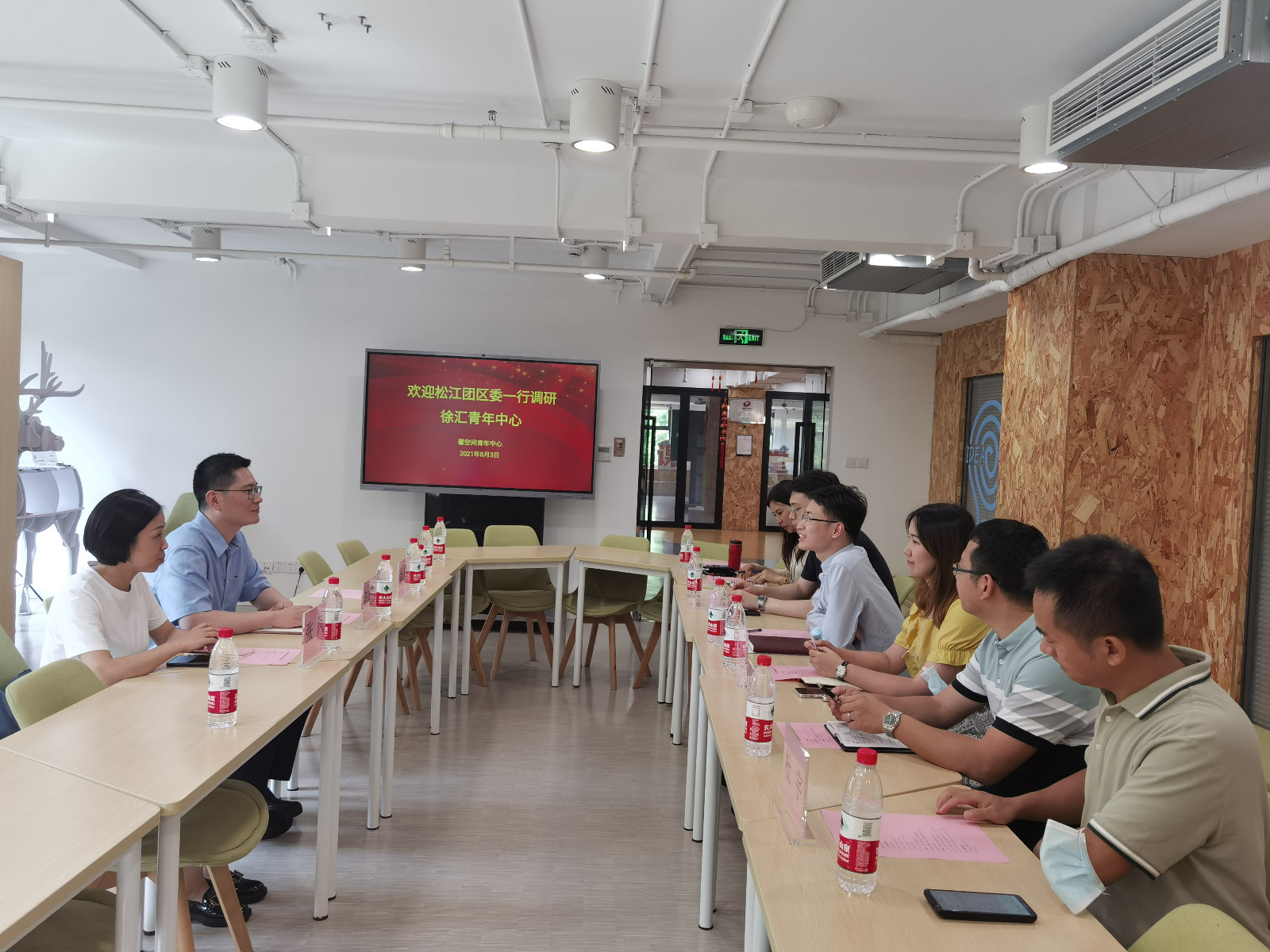 缘聚九点社工站青年中心调研并举行座谈会。徐汇团区委副书记陈涛陪同调研