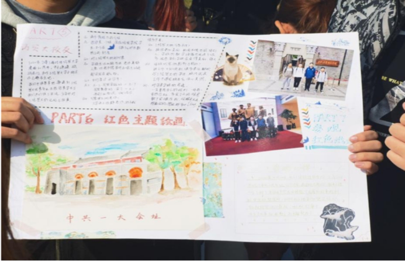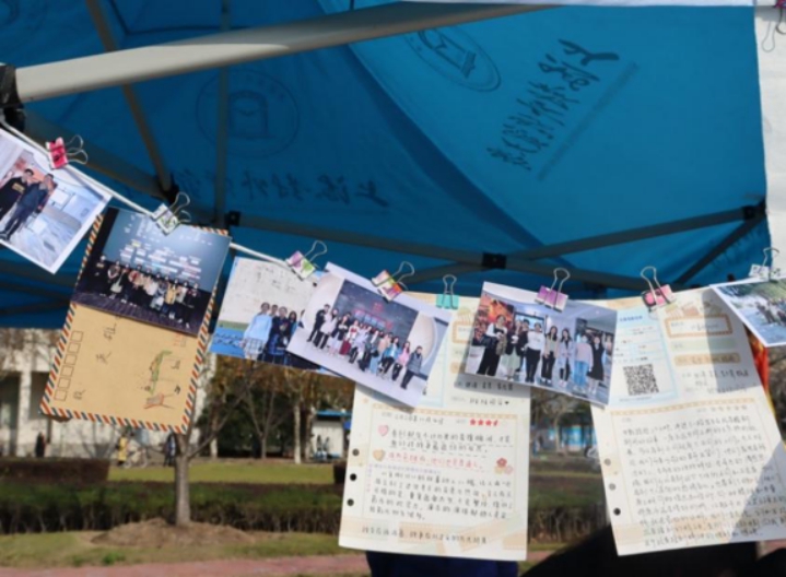 “银杏飘落知识门,春风又度思源湖”,暖意祝福化身诗情画意,娟娟文字书写于灯笼之上,随风飘逸,带走每一分美好祝福;“甲子峥嵘,风华正茂”,同学们回顾先辈痕迹被绘画于海报之上,一字一句缅怀先辈艰苦奋斗,色彩斑斓,寓意明天大放异彩!