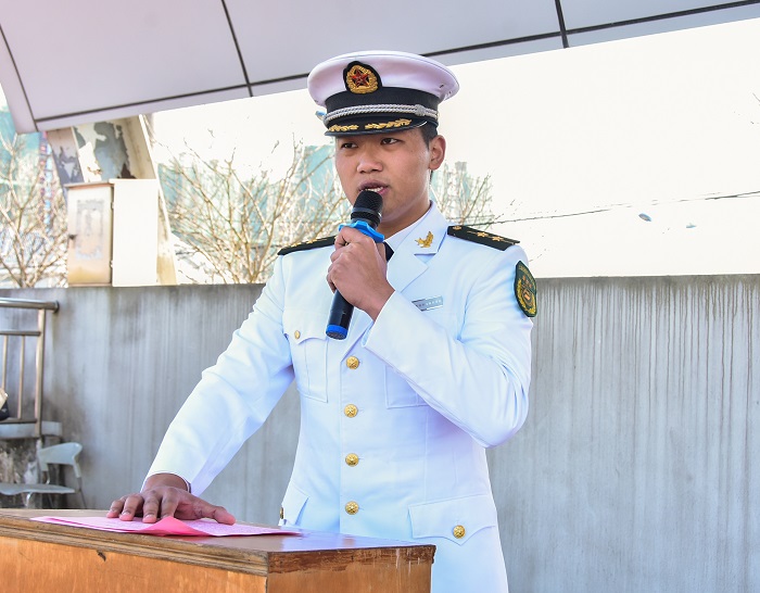 2019级涉外护理专业胡毅梵同学发言,他回顾了两年军旅生涯的感悟和收获、分享了回校后在学习、工作、生活、思想等方面的成绩,讲述了寒假在第六人民医院抢救室见习的经历。为期两年的兵役让他成长收获了很多,此时作为一名大二学生干部,一位入党积极分子,他仍然会以一名合格的四有军人的标准要求自己,坚定理想信念,为实现伟大的中国梦不懈努力,同时也希望思博学子们一起为梦想奋斗。