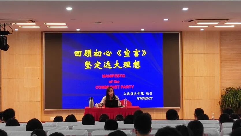 在为期两天的集中培训期间,上海海关学院思政部的顾荣老师以题为《回顾初心<宣言>,坚定远大理想》的讲座,为同学们深入浅出地介绍了《共产党宣言》的历史背景和主要内容。结合生动的历史故事和视频展示,顾老师深刻地指出了《共产党宣言》的正确性以及其对世界产生的深远影响,并激励在座学生树立远大理想,坚定不移地向前迈进。