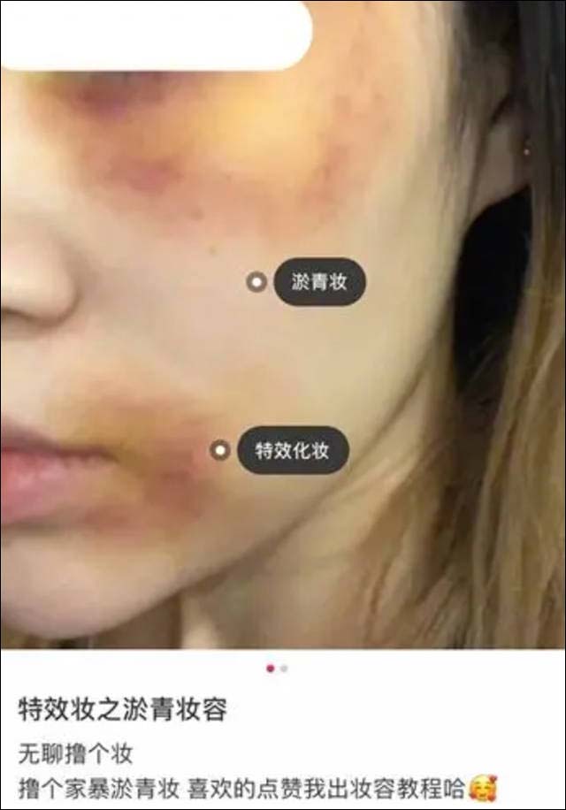 最近, 网上突然兴起一种妆容 ——“家暴妆” 在一些社交平台上,美妆博主们“秀”出了各色各样的“家暴妆”,并得意洋洋地以为“很美”“很可爱”。