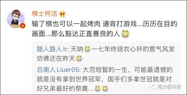 柯洁此后,又在回复中写道: “输了棋也可以一起烤肉,通宵打游戏…… 那么豁达正直善良的人”