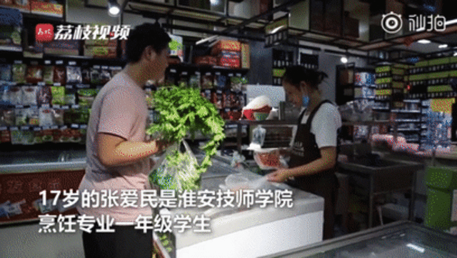 这位少年名叫张爱民 是一名烹饪专业的学生