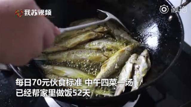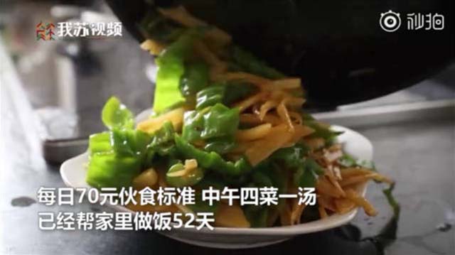 张爱民介绍说 按每天70元的伙食标准 中午四菜一汤 已经连续帮家里做饭52天 “平时都是妈妈做 暑假期间他们比较忙 就主动帮他们多做一点”