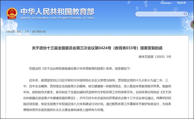 回应指出,要严格落实国家体育与健康课程标准,保质保量上好体育课。明确要求中小学生校内体育活动时间不少于1小时。针对突发疫情,教育部印发了《关于在常态化疫情防控下做好学校体育工作的指导意见》,统筹推进疫情防控和体育教育教学活动,创新形式加强学校健康教育教学。
