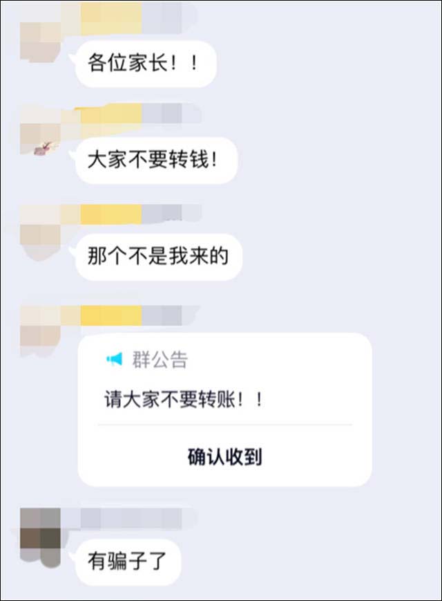 看到是“温老师”发的通知,名字头像也都对得上,群内已经有几位家长转账交款,王女士来不及多想,也跟随着交款。